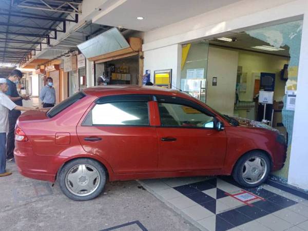 SIPITANG - Tindakan seorang wanita meninggalkan keretanya dalam keadaan enjin tidak dimatikan membawa padah apabila kenderaan itu merempuh pintu kaca sebuah bank di sini pagi tadi.