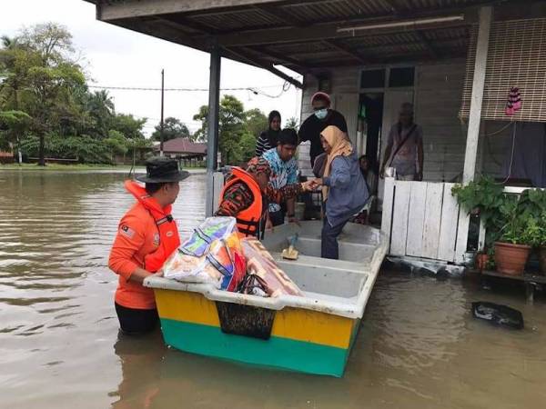 Mangsa banjir di Kemaman yang dipindahkan ke pusat pemindahan sementara. - Foto ihsan Facebook Polis Kemaman