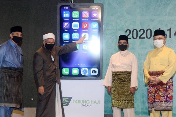 Menteri di Jabatan Perdana Menteri (Hal Ehwal Agama), Datuk Seri Dr Zulkifli Mohamad Al-Bakri (dua dari kiri) bersama Pengerusi Lembaga Tabung Haji, Tan Sri Md Nor Yusof (kiri); Pengarah Urusan Kumpulan dan Ketua Pegawai Eksekutif Lembaga Tabung Haji, Datuk Nik Mohd Hasyudeen Yusoff (dua dari kanan); Pengarah Eksekutif Haji Lembaga Tabung Haji, Datuk Seri Syed Saleh Syed Abdul Rahman (kanan) melancarkan aplikasi THiJARI yang diadakan di Menara Tabung Haji, Kuala Lumpur pada Selasa. Foto: Rosli Talib