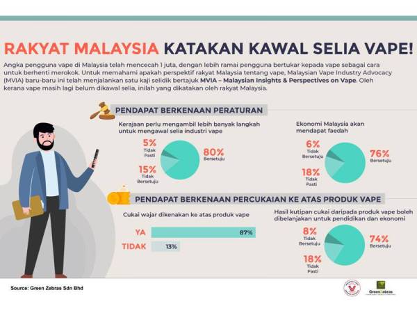Maklumat dikumpulkan daripada tinjauan Malaysian Insights & Perspectives on Vape yang dikendalikan Green Zebras, sebuah syarikat penyelidikan pasaran terkemuka di Malaysia atas permintaan Malaysian Vape Industry Advocacy (MVIA).