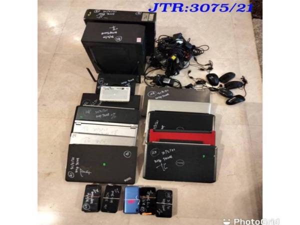 Saiful Anuar berkata, pihaknya turut merampas sebanyak 17 set komputer riba, lima set monitor, tujuh set CPU, tiga set papan kekunci, sembilan unit tetikus dan 55 buah telefon bimbit pelbagai jenama.