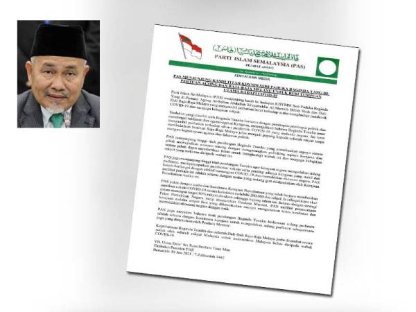 Menurutnya, Pas juga menjunjung tinggi titah Yang di-Pertuan Agong berhubung usaha mempercepatkan pemberian vaksin serta pentingnya memiliki kerajaan yang stabil dan kukuh bagi menangani pandemik Covid-19 dan memulihkan ekonomi negara.
