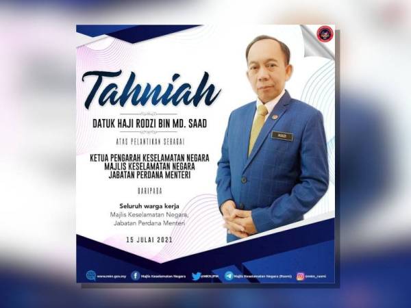 "Syabas dan tahniah atas pelantikan Rodzi sebagai Ketua Pengarah Keselamatan Negara berkuat kuasa pada 15 Julai 2021.