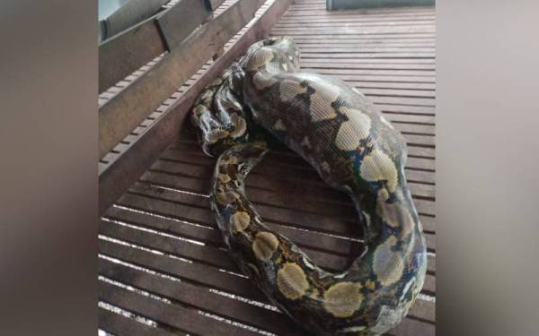 Abangnya, Abd Aziz Senik, 61, berkata, adiknya yang terkejut dengan penemuan itu segera memanggilnya sebaik melihat haiwan seberat 100 kilogram itu berlingkar kekenyangan di dalam kandang.