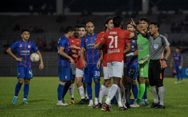Tindakan itu dipercayai berpunca akibat rasa marah Kenny yang dilayangkan kad merah selepas dia didakwa sengaja menolak kepala pemain tengah JDT, Leandro Velazquez.