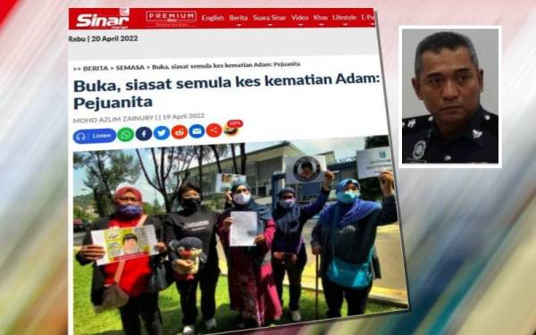 Pada Selasa, Pejuanita Wilayah Persekutuan Kuala Lumpur membuat satu laporan polis di Balai Polis Setiawangsa di sini, meminta polis membuka semula siasatan membabitkan kematian Adam.
