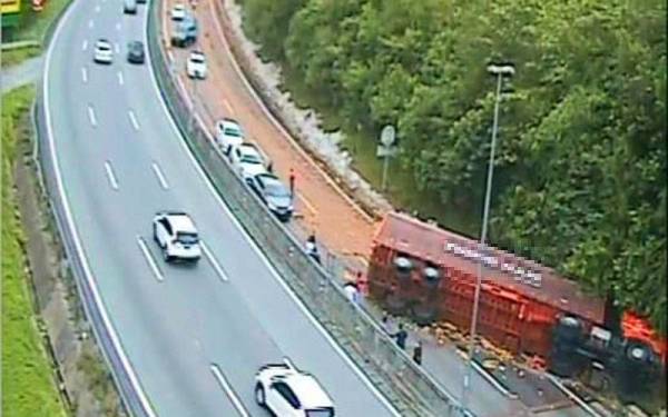 Lori bawa sardin terbalik, lebuh raya bertukar 'merah'