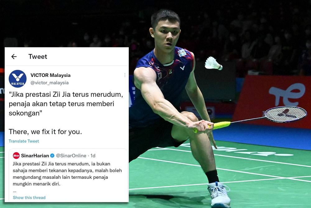 “Jika prestasi Zii Jia terus merudum, penaja akan tetap terus memberi sokongan,” ciap Victor Malaysia di Twitter rasmi pada Ahad.