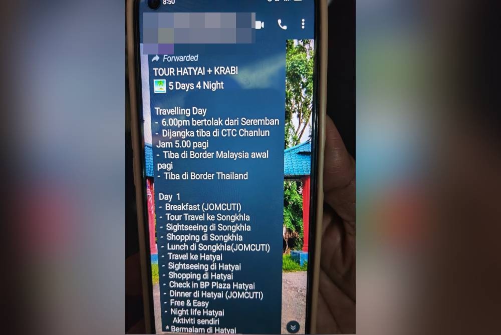 "Kami sepatutnya menaiki bas dari Seremban ke sempadan Thailand pada jam 6 petang dan masing-masing semuanya dah bersiap sedia kerana ada yang datang dari Melaka, Kuala Lumpur dan Batu Pahat.