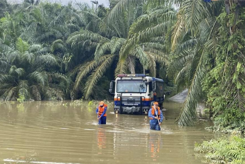 Katanya, Jalan Mawai Lama di Kota Tinggi masih lagi dibuka untuk kenderaan berat sahaja kerana air naik setinggi 0.35 meter.