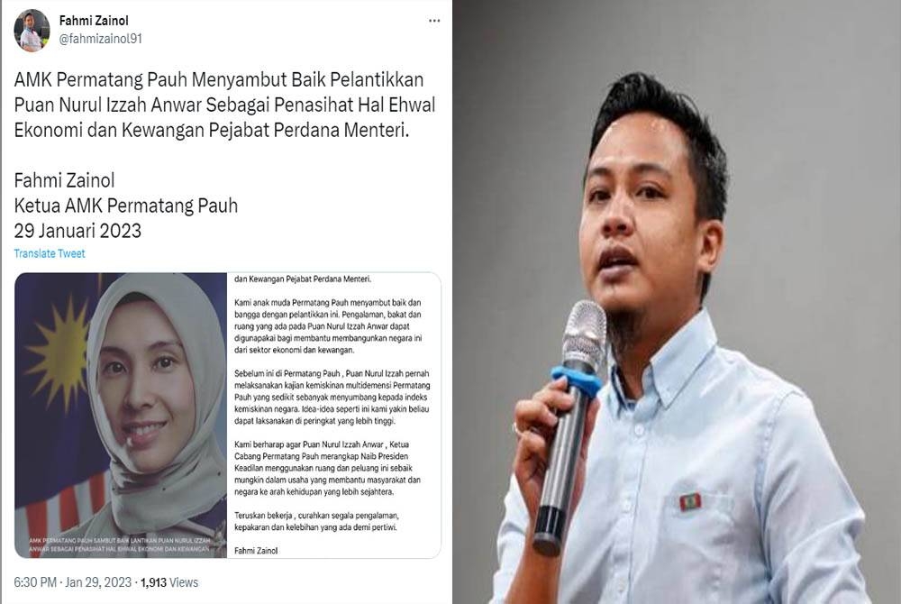 “Kami anak muda Permatang Pauh menyambut baik dan bangga dengan pelantikkan ini,” katanya dalam ciapan di Twitternya pada Ahad.