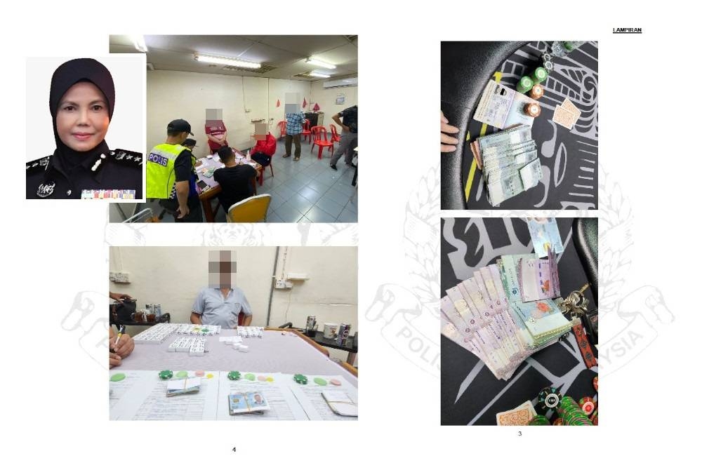 Setiausaha Polis Diraja Malaysia (PDRM), Datuk Noorsiah Mohd Saadudin berkata, jumlah itu membabitkan kategori judi dalam bangunan dan judi luar bangunan dengan jumlah rampasan bernilai RM 514,793.