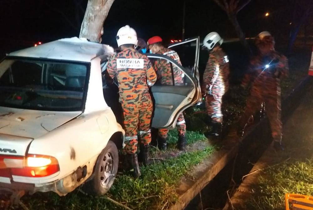 Menurutnya, ketika tiba di lokasi kejadian, kereta dipandu mangsa dipercayai hilang kawalan sebelum terbabas melanggar sebatang pokok.