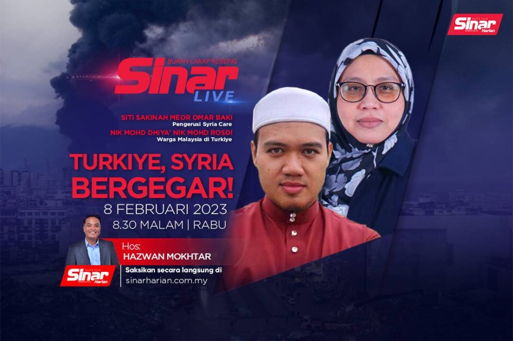 Ikuti perkongsian bersama Pengerusi Syria Care, Siti Sakinah Meor Omar Baki dan warga Malaysia di Turkiye, Nik Mohd Dhiya’ Nik Mohd Rosdi malam ini jam 8:30PM di semua platform digital Sinar Harian.
