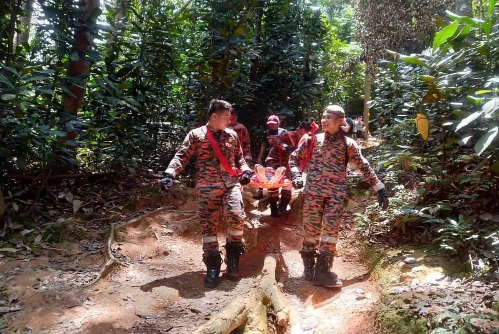 Katanya, mangsa kemudian dibawa turun dengan menggunakan pengusung sebelum diserahkan kepada petugas Kementerian Kesihatan Malaysia (KKM).