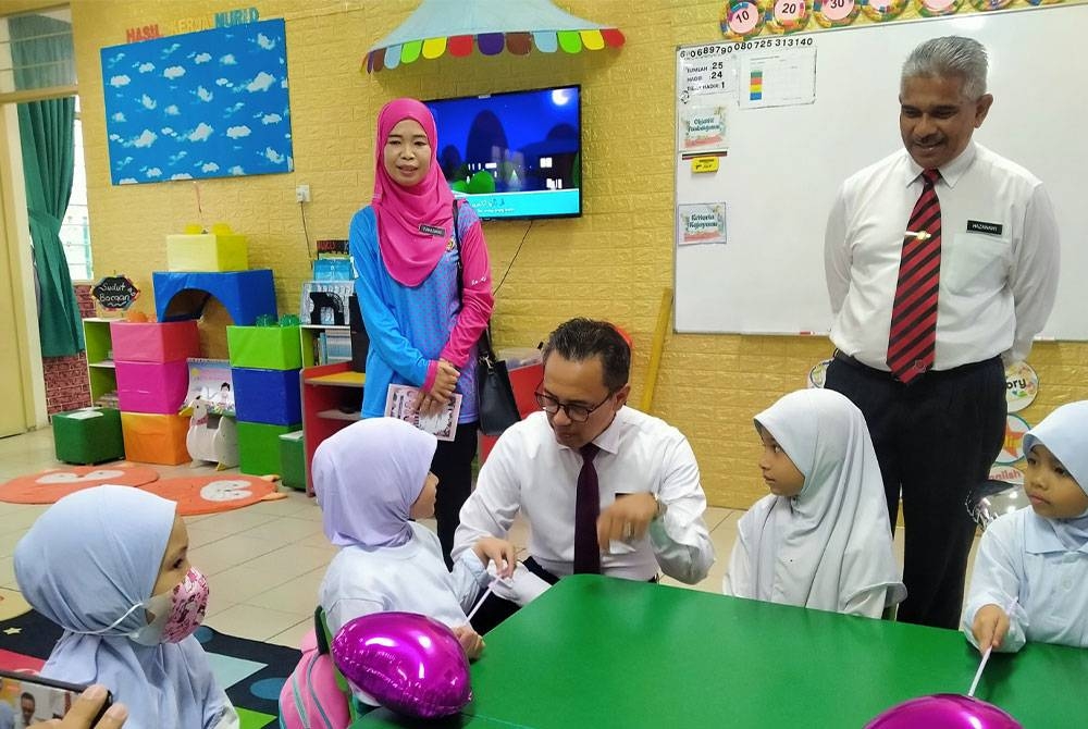 Turut hadir menyantuni murid-murid pada hari pertama persekolahan itu, Pengarah Jabatan Pendidikan Perak, Mohamad Fauzi Mahson.
