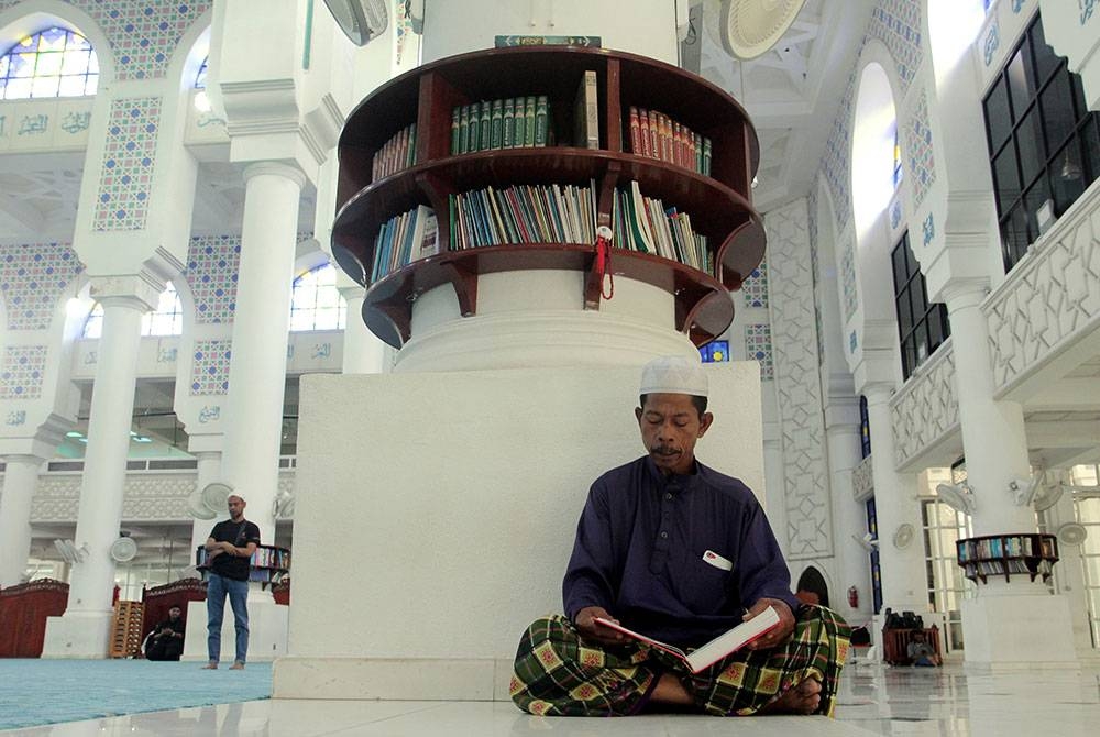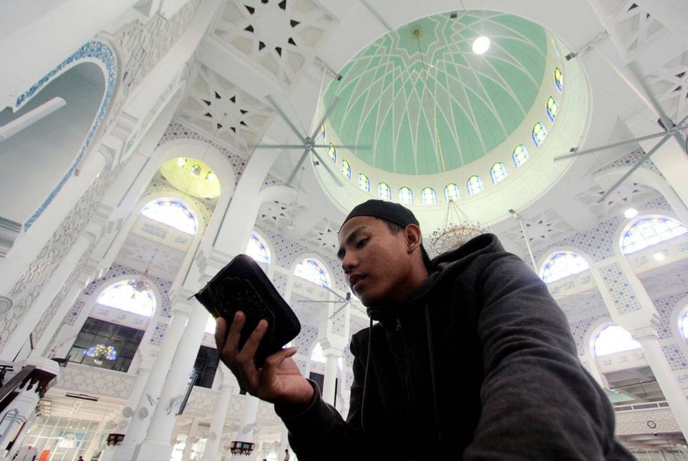Penduduk Kuantan Faiz Ahmad tekun membaca Al-Quran di Masjid Negeri Sultan Ahmad Satu hari ini.