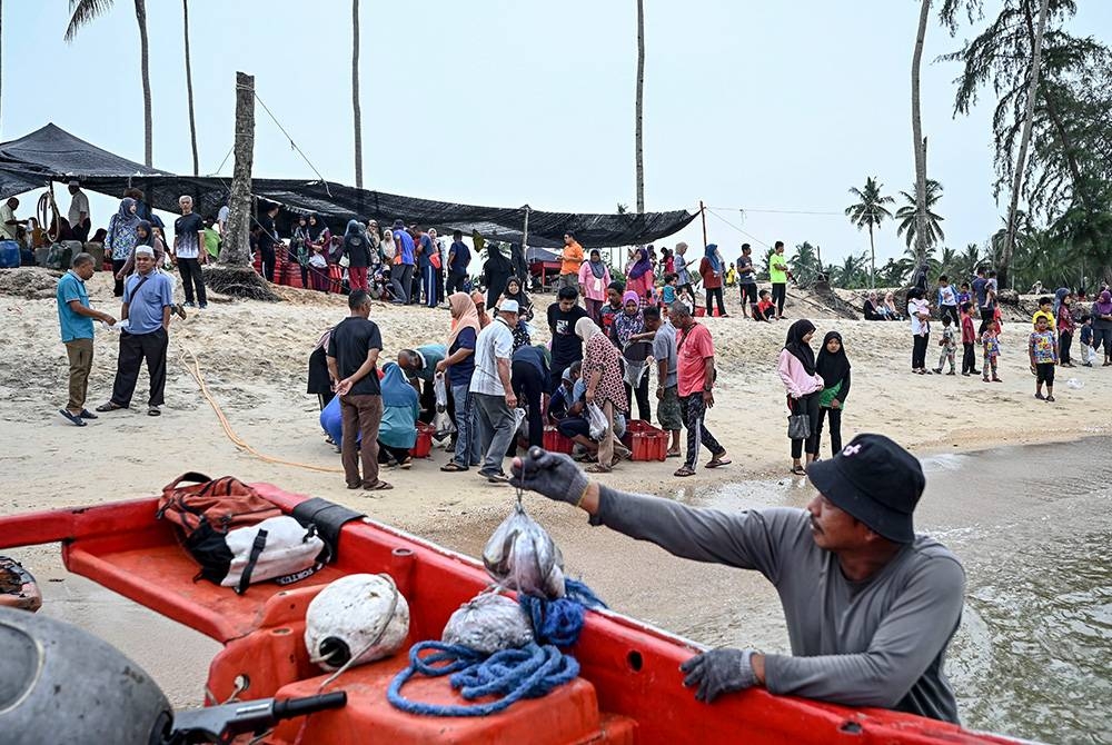 Pengunjung mula hadir di pantai tersebut seawal 7.30 pagi kerana mahu mendapatkan stok ikan yang segar secara terus dari nelayan tempatan.