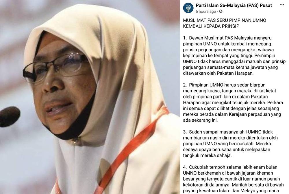 "Kita menyeru pimpinan UMNO untuk kembali memegang prinsip perjuangan dan mengangkat wibawa kepimpinan ke tempat yang tinggi.