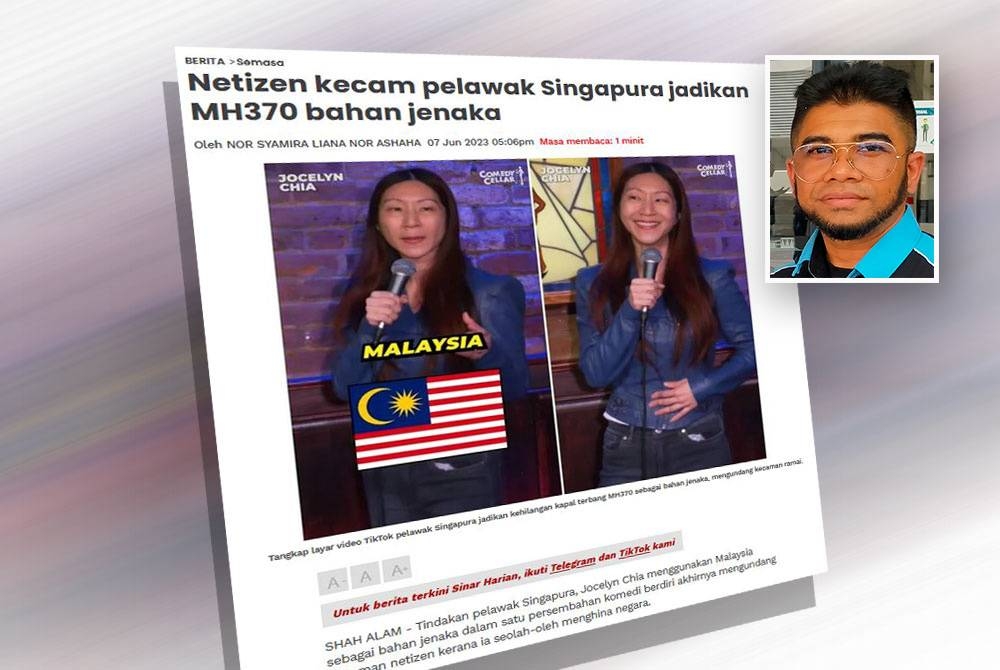 Beliau berkata, laporan jenayah perlu dibuat oleh kedutaan Malaysia di negara tempat wanita itu membuat persembahan menghina Malaysia dan mempersendakan kejadian kapal terbang MH370 yang terhempas.