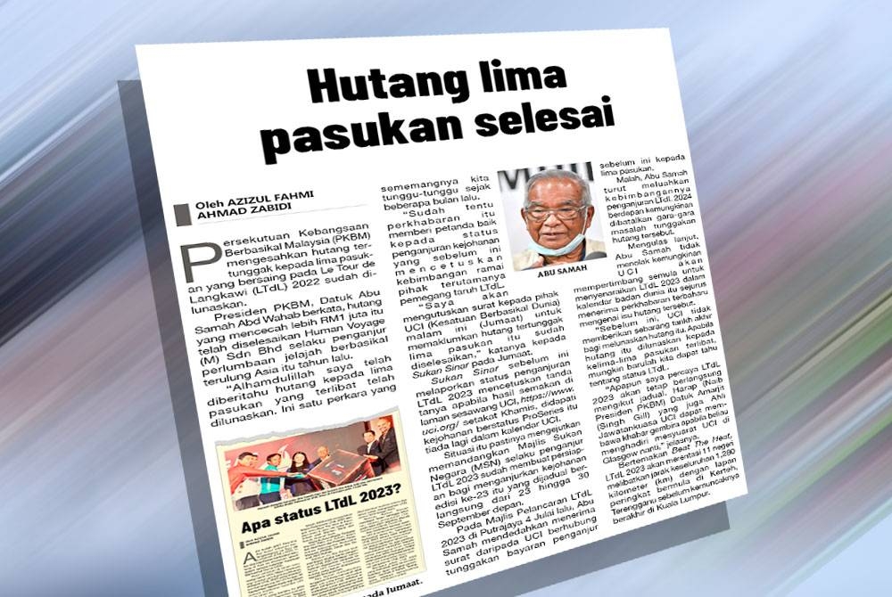 “Saya diberitahu hutang kepada lima pasukan itu sudah selesai. Jadi ini satu perkembangan yang baik sebelum saya membawa perkara ini dalam mesyuarat (UCI) itu nanti," jelasnya.