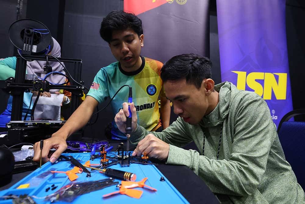 Pelajar Universiti Kebangsaan Malaysia (UKM) yang juga ahli Kelab Dron UKM Nur Syahira Nabila Shahril tekun menyiapkan sebiji dron pada Hari Terbuka Aksadron Sempena Minggu Inovasi Cyberjaya di Reka Scape hari ini.