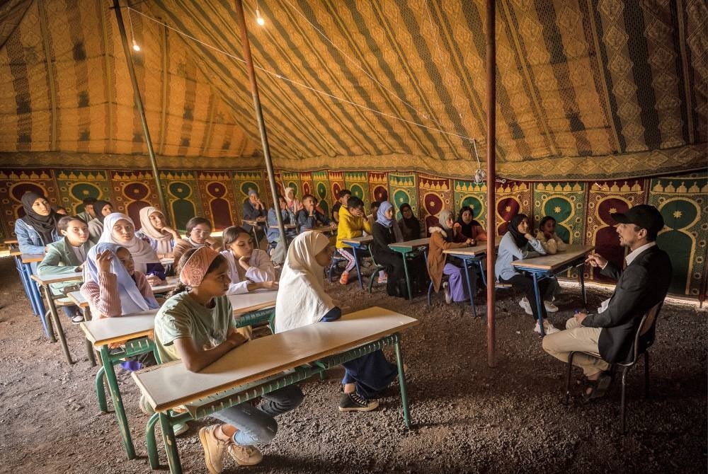 ASNI - Di kawasan pergunungan dilanda gempa di Maghribi, Abdessamad El Berd, 13, terpaksa bangun tidur sebelum waktu Subuh untuk melakukan perjalanan agak jauh ke 'bandar khemah' yang kini menjadi sekolah baharunya.