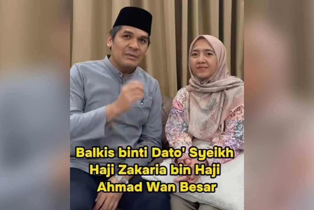 “Nama isteri saya, Balkis Datuk Syeikh Haji Zakaria bin Ahmad Wan Besar. Kalau sahabat-sahabat di Kedah, pasti mengenali salah seorang ulama besar yang menerbitkan buku dan kerap bersiar di radio ketika itu. Jadi, inilah isteri saya.