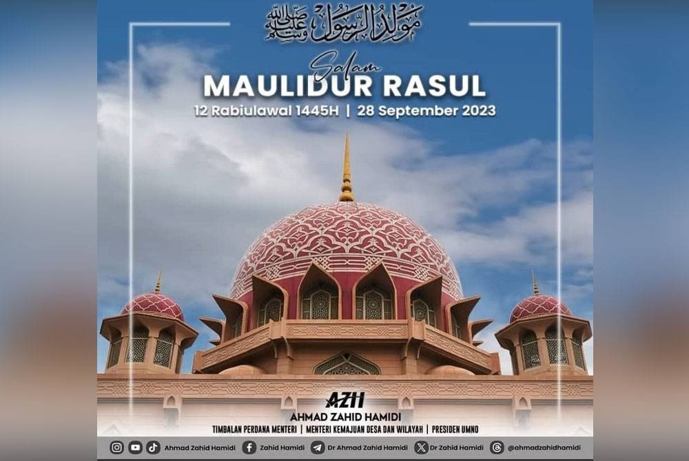 KUALA LUMPUR - Jemaah Menteri menerusi media sosial mengucapkan selamat menyambut Maulidur Rasul kepada semua umat Islam, dan mengajak seluruh ummah untuk berselawat.