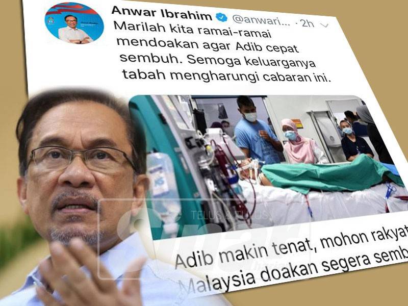 Dalam ciapan di laman Twitter beliau, Anwar turut mendoakan agar keluarga Muhammad Adib tabah mengharungi cabaran itu.