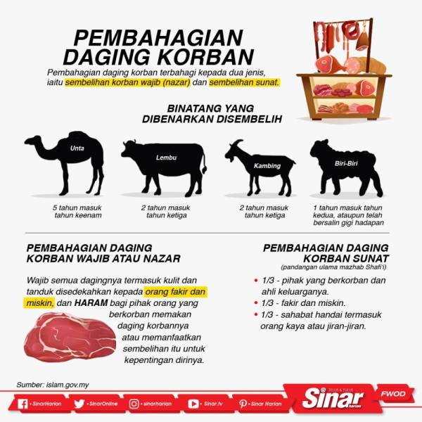 Daging korban terbahagi kepada dua jenis, iaitu sembelihan korban wajib (nazar) dan sembelihan sunat.
