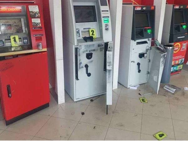 SHAH ALAM - Sebuah mesin pengeluaran wang automatik (ATM) dan dua mesin deposit tunai (CDM) cuba dilarikan penjenayah daripada bank di sebuah bank di Setia Alam di sini, pagi tadi.