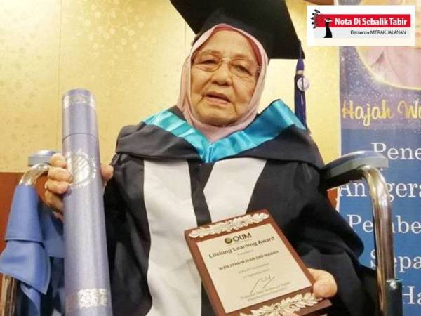 Berkerusi roda ketika hadir untuk menerima ijazahnya, semangat dan nekad Tok Wan ini sepatutnya menjadi contoh serta tauladan kepada generasi muda dalam konteks menuntut ilmu khususnya.