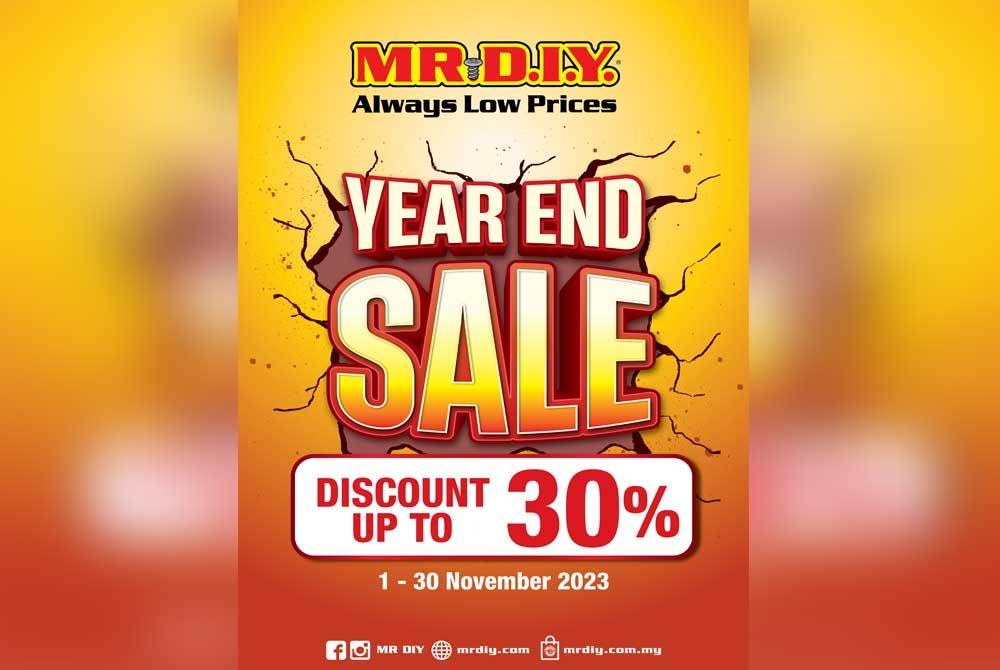 PERUNCIT perkakas rumah kegemaran Malaysia, Kumpulan MR D.I.Y. (M) Berhad (MR D.I.Y) menawarkan diskaun sehingga 30 peratus menerusi inisiatif 'Jualan Akhir Tahun' bagi membantu pengguna berjimat dan mendapat nilai terhebat.