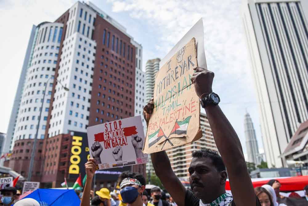 Tambahnya, himpunan berkenaan bukan sahaja dilakukan di Malaysia malah turut dilakukan di peringkat antarabangsa yang mana ia memaparkan kebersamaan penduduk dunia dengan Palestin.