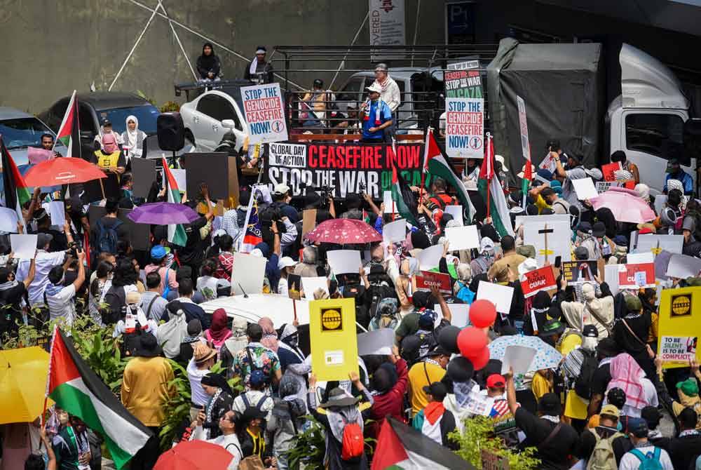 KUALA LUMPUR - Perhimpunan ‘Hari Bertindak Global: Gencatan Senjata Sekarang, Hentikan Perang di Gaza’ memaparkan semangat perjuangan rakyat Malaysia dalam menggesa negara kuasa besar Amerika Syarikat (AS) untuk gencatan senjata terhadap perang di Israel-Palestin.
