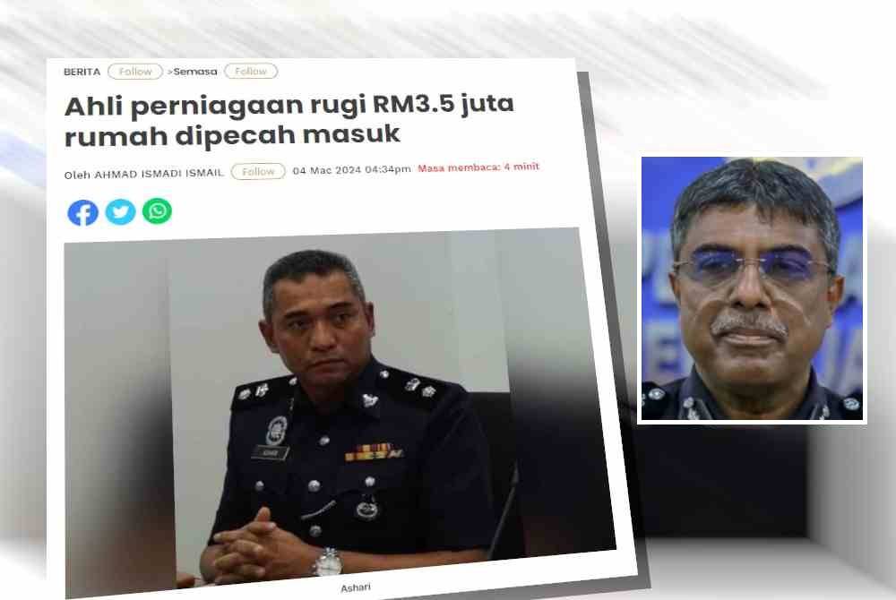 Pada Isnin, media melaporkan seorang ahli perniagaan wanita kerugian RM3.5 juta selepas peti besi yang mengandungi jongkong emas dan wang tunai dilarikan di rumahnya.
