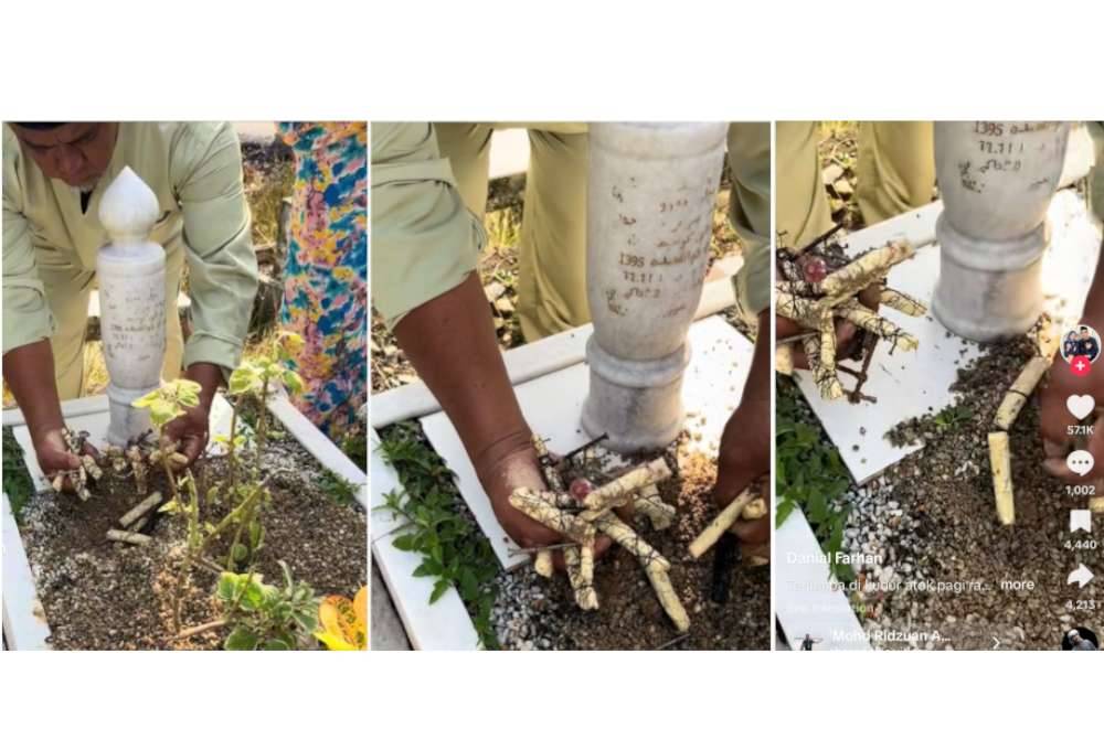 Menerusi perkongsian video berdurasi 27 saat di TikTok, jelas kelihatan banyak bungkusan kecil tersebut di atas pusara yang dikutip oleh ahli keluarga di Tanah Perkuburan Islam Bakri Batu 1, Muar.