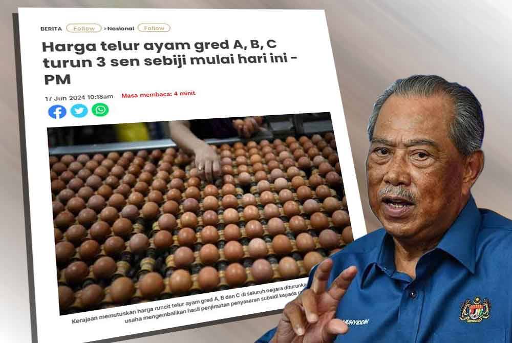 SHAH ALAM - Pengerusi Perikatan Nasional (PN), Tan Sri Muhyiddin Yassin meluahkan rasa kecewa selepas Perdana Menteri, Datuk Seri Anwar Ibrahim mengumumkan penurunan harga telur dan bukan pakej ekonomi yang lebih komprehensif kepada rakyat.