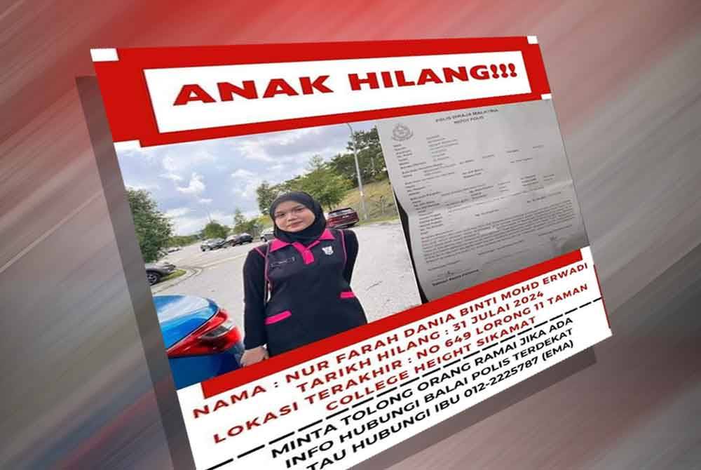 Pada Rabu, tular di media sosial mengenai kehilangan remaja tingkatan lima itu dan dia kali terakhir dilihat di kediamannya di Taman College Heights, Sikamat di sini.