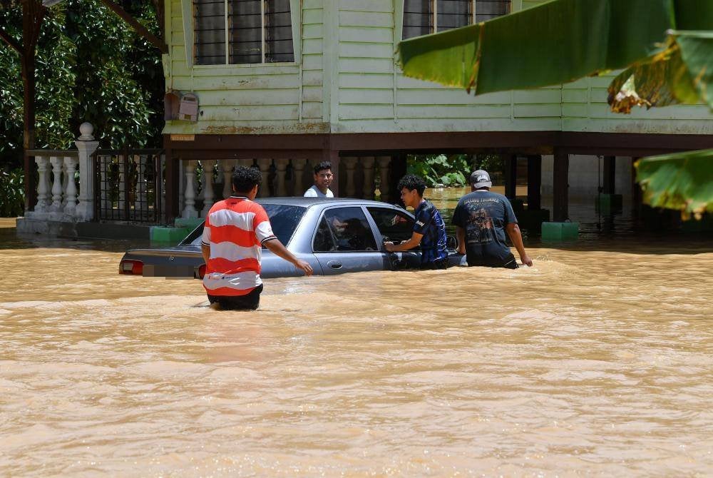 Keadaan kereta milik penduduk yang ditenggelami air di Kampung Balun berdekatan dengan Taman Slim Permai akibat paras air sungai Slim meningkat berikutan hujan lebat berterusan sejak malam tadi ketika tinjauan hari ini.