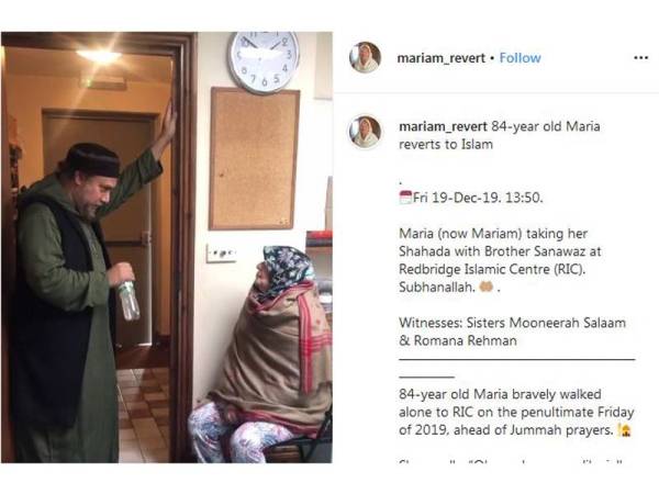 Menerusi entri Instagram miliknya, Mariam berkongsi, dia pertama kalinya menjejakkan kaki di Redbridge Islamic Center (RIC) pada 19 Disember 2019 dan mengucap dua kalimah syahadah di sana.