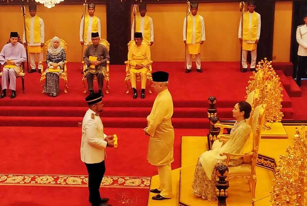 KUALA KANGSAR - Sultan Perak, Sultan Nazrin Muizzuddin Shah berkenaan mengurniakan darjah kebesaran serta pingat sempena Hari Ulang Tahun Keputeraan baginda ke-68 di Istana Iskandariah di sini pada Sabtu.