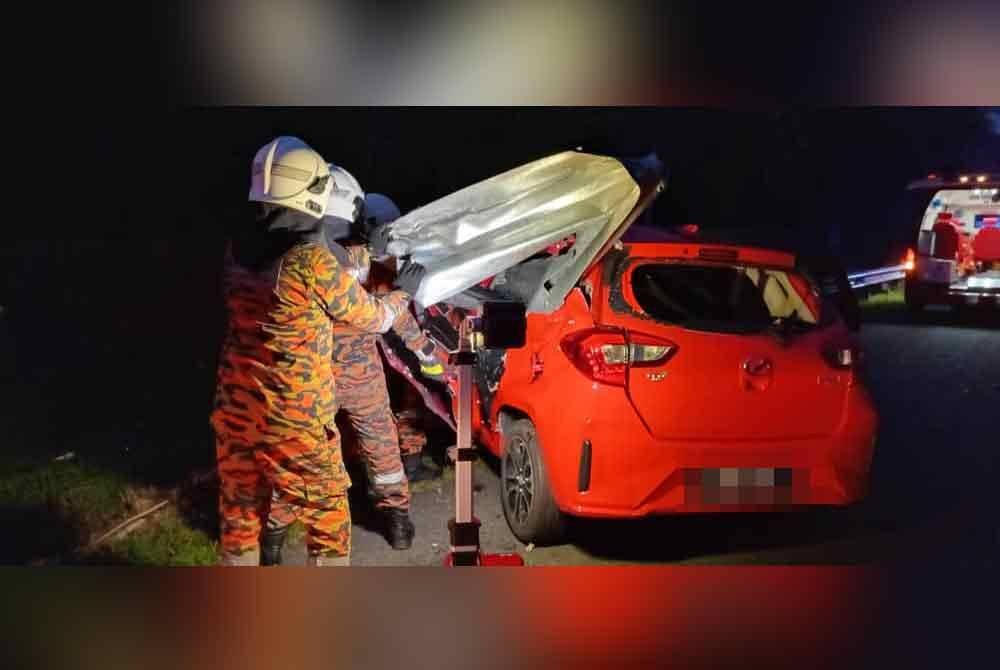 "Sementara itu, dua lagi rakannya iaitu pemandu berusia 20 tahun dan penumpang belakang sebelah kanan berusia 21 tahun selamat, masing-masing mengalami kecederaan di kaki selain luka-luka ringan.
