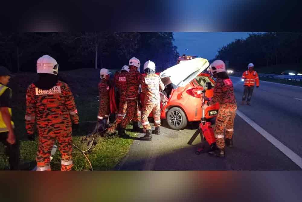 "Setibanya di lokasi didapati sebuah kereta Perodua Myvi terbabas dan terdapat dua mangsa wanita berusia 20-an berjaya keluar. Terdapat dua mangsa wanita tersepit dalam kenderaan yang remuk dan disahkan meninggal dunia di lokasi oleh petugas perubatan.