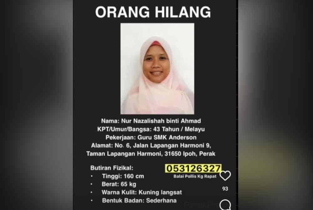 Hilang 17 hari, Cikgu Nur Nazalishah ditemui di Teluk Intan