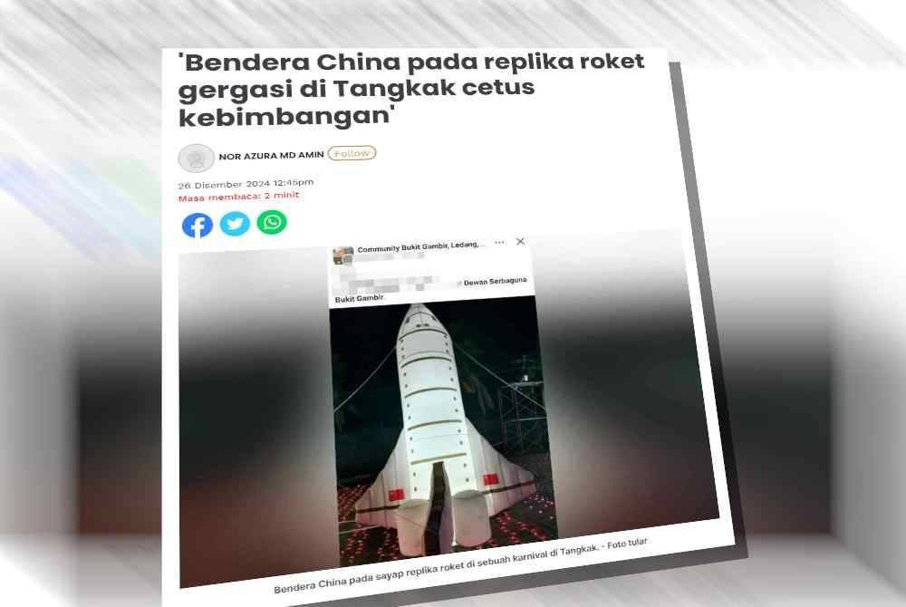 "Pengadu telah membaca komen daripada penduduk di kawasan Bukit Gambir yang rasa tidak selesa dengan keberadaan replika roket menampilkan logo bendera China," katanya dalam kenyataan pada malam Khamis.