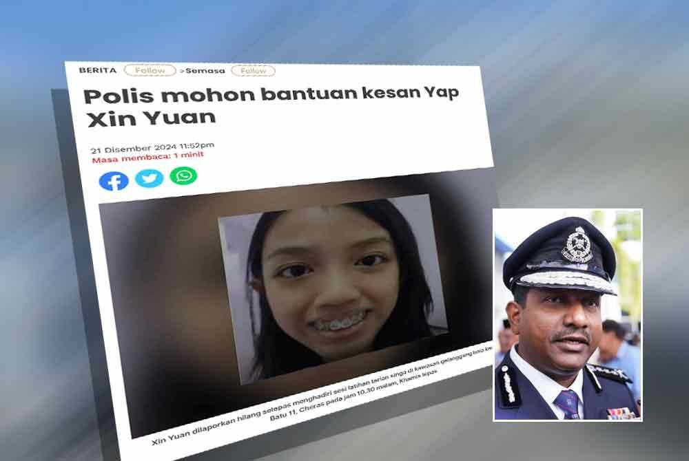 Sebelum ini, Ketua Polis Daerah Kajang, Asisten Komisioner Naazron Abdul Yusof menyatakan, pihak polis menerima laporan berhubung kehilangan Yap Xin Yuan daripada keluarganya jam 2.15 pagi pada Isnin.