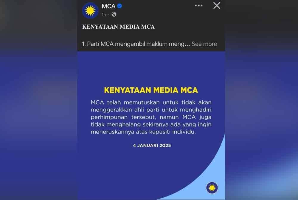 Bagaimanapun MCA berkata, parti itu tidak menghalang sekiranya ada ahli yang mahu menyertai perhimpunan tersebut atas kapasiti individu.