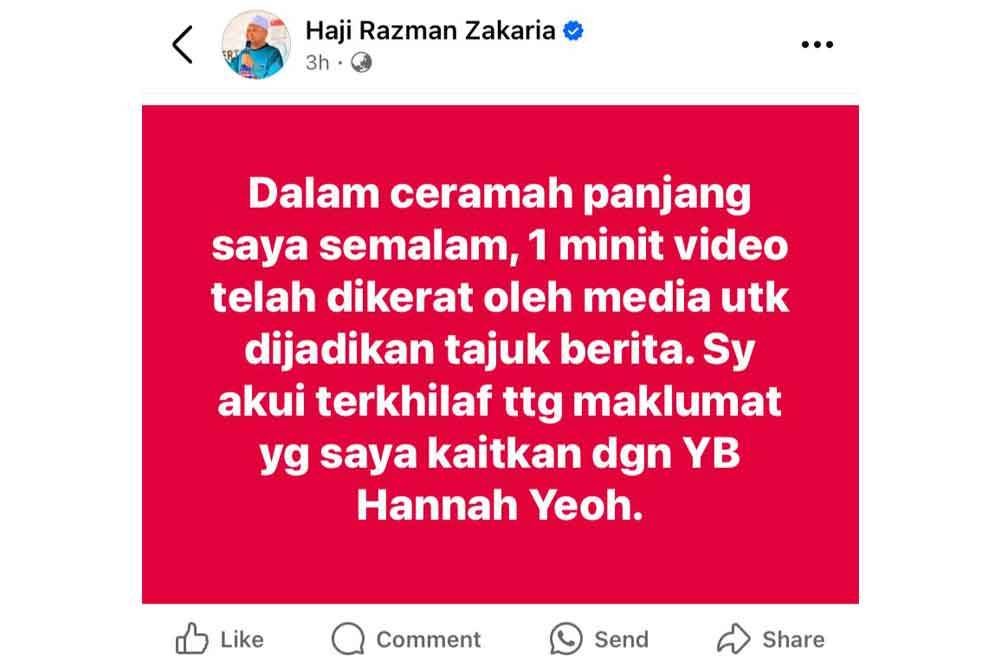 Susulan itu, beliau mengakui terkhilaf dan memohon maaf Hannah serta Kumpulan YTL sekali gus mengakui kedua-duanya tidak mempunyai kaitan sama sekali.